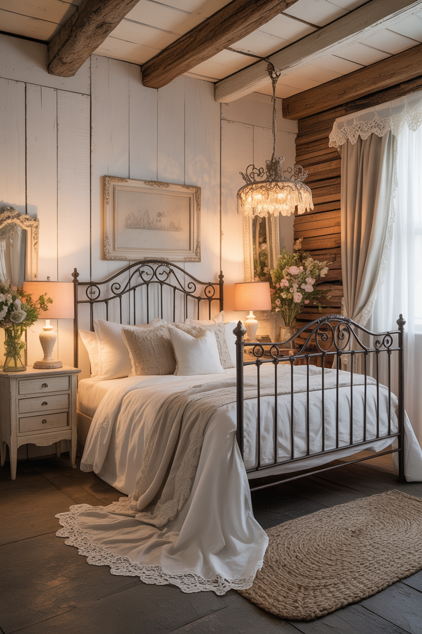 The true magic of this specific aesthetic lies in the tension between the rustic and the refined. If a room is entirely filled with rough wood and heavy iron, it simply feels like a cabin. To elevate it to Shabby Chic sophistication, you must introduce elements of delicate, undeniable romance.