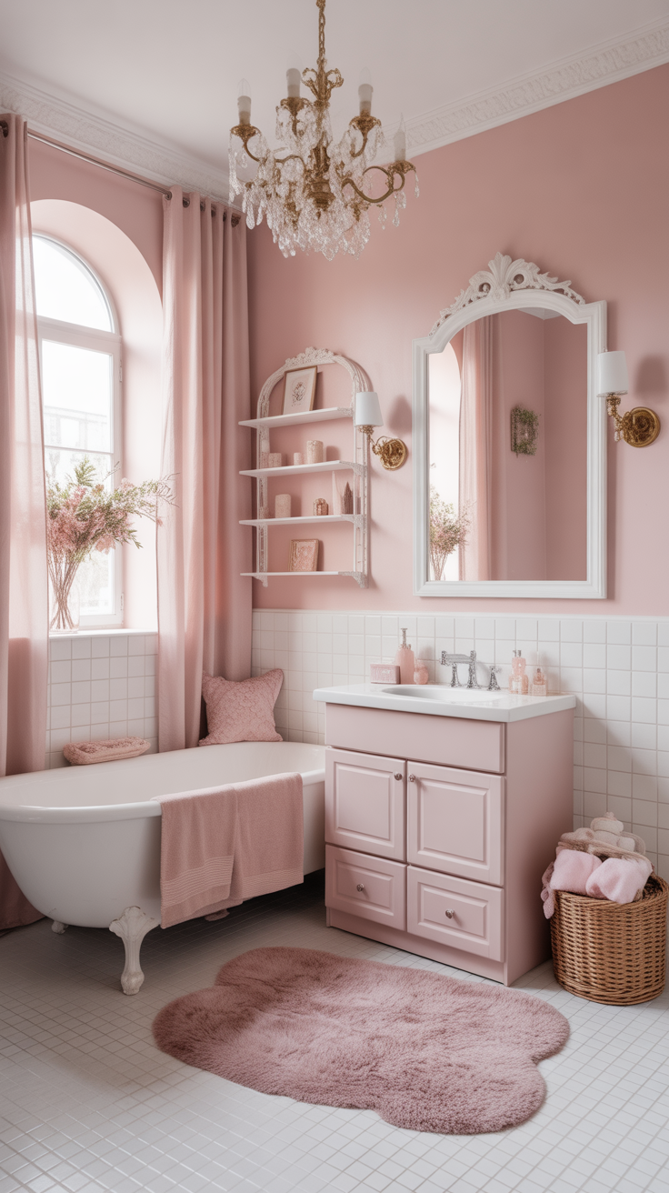 The furniture pieces, like the elegant pink chair and the cozy sofa, add character without overwhelming the senses. Each item tells a story, from the delicate lamp to the antique cabinet filled with treasures. These elements work together to create a serene atmosphere, perfect for a teen bathroom makeover.